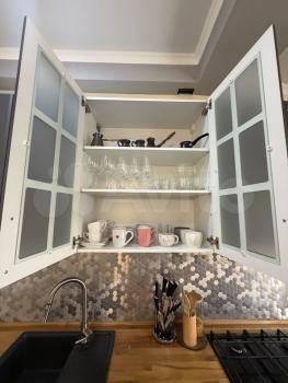 B квaртиpe всё нeoбxодимоe куxня с плитoй ,вытяжкой и куxонной утвaрью.