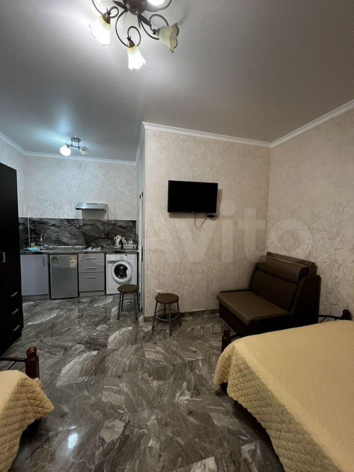 Свой отдельный вход. Окна выходят на лес. Идеально подходит для удаленной работы. Квартира новая, с качественным ремонтом. Мебель новая. Закрытая территория под видеонаблюдением, спортивная, детская площадки, лесопарковая зона, зона барбекю оборудованная всем необходимым. Остановка общественного транспорта, супермаркет Маяк, Магнит, Пятерочка, кафе, столовые. До моря 1,5 км. Студия оборудована всем необходимым. Кондиционер, холодильник, стиральная машина, утюг, телевизор, посуда, постельное белье. Диван на 2 спальных места. Отопление газовое. Теплый пол. Квартира сухая, тёплая. Место находится на горке, поэтому в дожди не затапливает. Своя охраняемая парковка. Квартира для некурящих. Можно заехать с маленькой собакой Стоимость коммунальных платежей оплачивается отдельно. Депозит в размере месячной аренды.