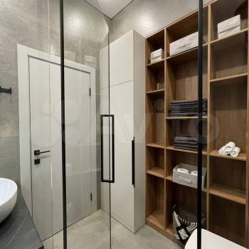 В квартире 3 изолированные комнаты и кухня-гостинная, удобная рабочая зона, детская со шведской стенкой, очень много места для хранения вещей, 3 шкафа от потолка до пола с зеркалами, 4 кондиционера, качественная мебель и техника, которые подбирались для себя: встроенный холодильник, электроплита с духовкой, набор посуды, чайник, пароварка, блендер, соковыжималка, микроволновка, вытяжка, стиральная машина, утюг, пылесос, ортопедический матрас, телевизор. Посудомойки нет.