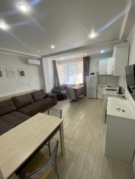 Квартира-студия в Адлере в районе Орёл-Изумруд. Свежий ремонт, мебель и техника, балкон. В наличии: кондиционер, стиральная машина, утюг, посудомойка, духовка, микроволновка, чайник, плита индукция, пылесос, посуда. Имеется проводной интернет, могу оставить принтер, акустику. Все необходимое для жизни, 3 спальных места. Во дворе парковка, детская площадка, зона барбекю, беседка. Тихое и спокойное место, вокруг природа и чистый воздух. Остановка в 5 минутах.