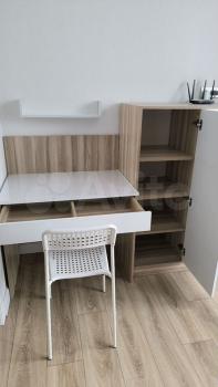 санузел - раздельный, мебель - кухня, хранение одежды, спальные места, кондиционер, холодильник, плита, микроволновка, стиральная машина, водонагреватель, телевизор.