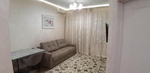 В квартире сделан качественный евроремонт. Обстановка продумана до мелочей: есть вся необходимая мебель как в комнате, так и на кухне. Для вашего комфорта установлена современная бытовая техника, включая холодильник, телевизор, стиральную машину и кондиционер. Совмещённый санузел оборудован ванной.