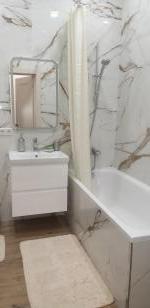 Квартира оформлена с дизайнерским ремонтом, что создаёт атмосферу уюта и комфорта. В наличии вся необходимая мебель как на кухне, так и в комнате. Для вашего удобства установлены современный кондиционер, холодильник, посудомоечная машина, телевизор и стиральная машина. Санузел совмещённый, оборудован душевой кабиной с отдельной лейкой тропический дождь. В добавление к центральному водопроводу имеется подключение к водонагревателю на 80 литров, на случай отключения или профилактических работ.