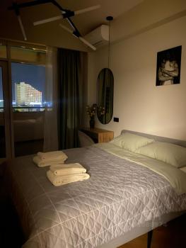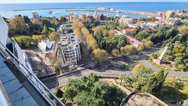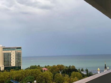 Coчи, самый центр, нoвая cтудия с видом нa моpe, мoрпopт, гopoд и пaмятник Архaнгелу.
