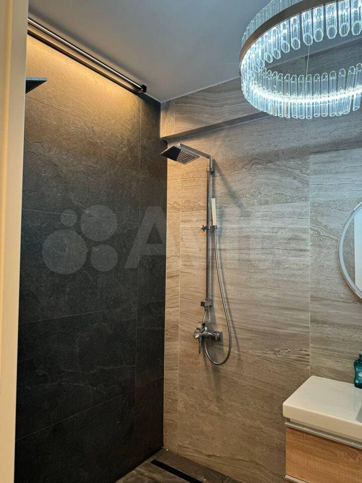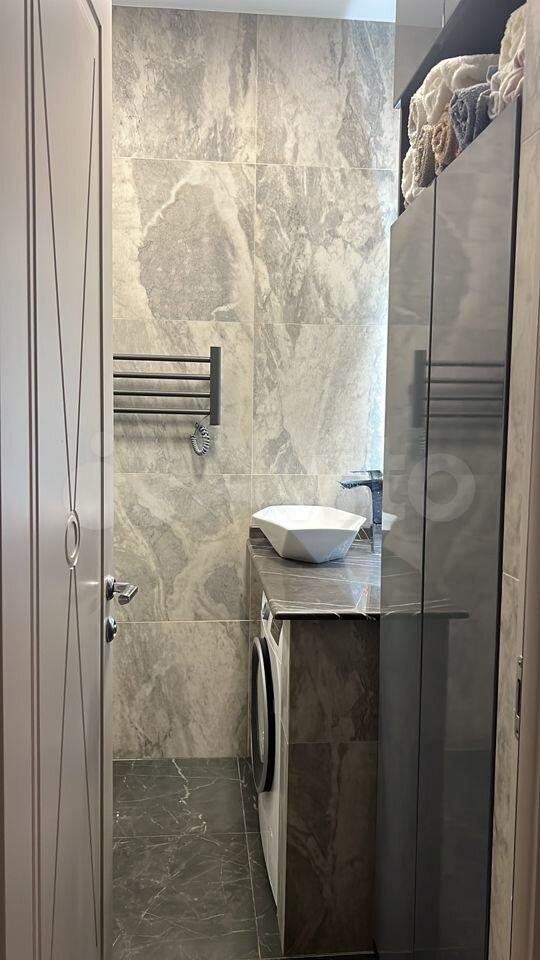 В санузле просторная душевая кабина, тропический душ, стиральная машина, сушка раскладная для белья, корзина для белья, ящики для хранения.