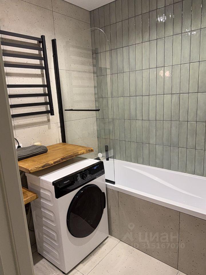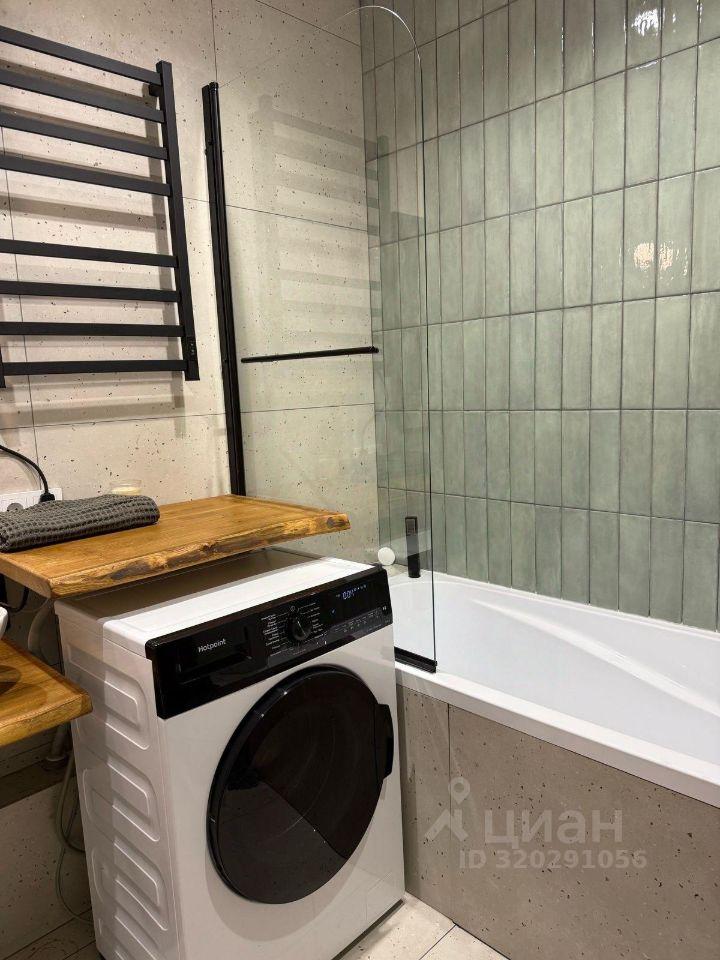 Ванная комната совмещенная, оснащена ванной и стиральной машиной.