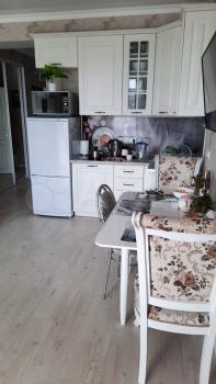 Двухкомнатная квартира /евродвушка/42 кв.м., 8/9 этаж, в новом доме, с видом на горы и море/видно кусочек/, с хорошим ремонтом. Есть лифт, спортивная площадка, парковочные места, дом огорожен. Рядом магазин "Магнит", автобусная остановка в шаговой доступности. За домом озеро и лес. Отопление теплым полом и сплит системами. Сдается на длительный срок В квартире имеется все необходимое для проживания, постельные принадлежности, посуда, холодильник, стиральная машина, два телевизора, Интернет, домофон.