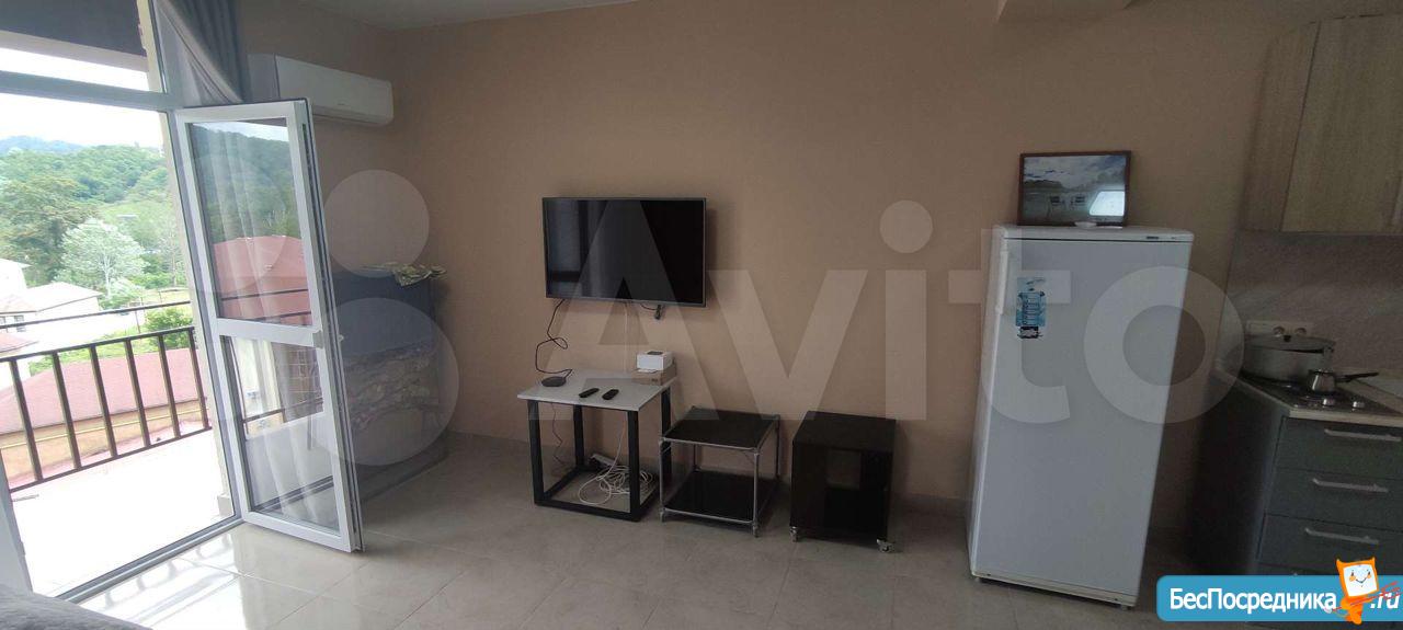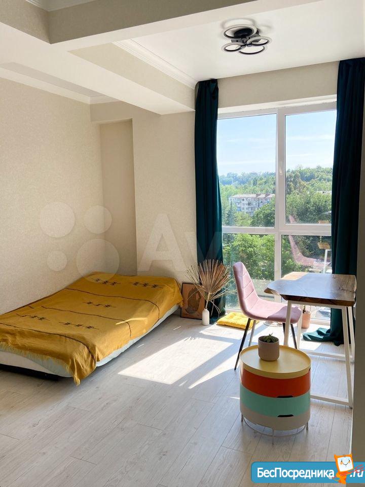 Сдается квартира студия на длительный срок в живописном месте в новом доме. Евроремонт. Имеется все для комфортного проживания. Во дворе охраняемая парковка и детская площадка. Рядом магазин Магнит и автобусная остановка. До центра Адлера 20 минут на общественном транспорте. Сдается на длительный срок без повышения аренды на лето.