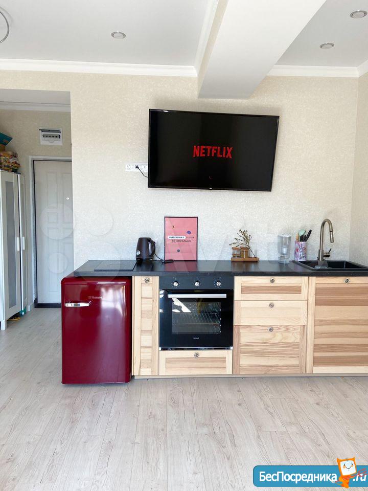 Новая духовка, плита, чайник с показателем температуры нагрева, отпариватель, фен. Большой телевизор со Smart TV, оплачены премиум подписки Кинопоиск, Premier, Нетфликс. Можно легко передавать видео с YouTube на телефоне на ТВ.