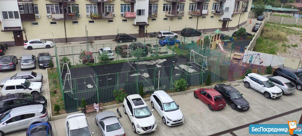 Своё парковочное место, закрытый двор, магазин в соседнем доме, дорога без горок, не затапливает при непогоде, две объездные дороги в случае пробок - в сторону Поляны и Сочи, район идеальный. До жд вокзала Адлер 20 минут пешком.