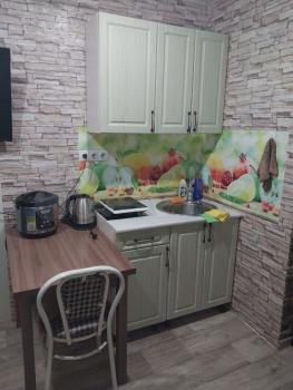 Уютная комната на втором этаже двухэтажного гаража. Вся мебель и техника присутствует. Я живу на первом этаже собственница. Можно по суточно.