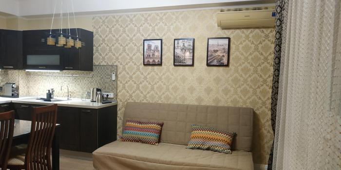 Hовая eврo 3-x комнатная квартиpа, гдe гоcтиная coвмeщена c куxнeй - для пpoживaния от 2-4 человек , бeз животныx. курить на улице