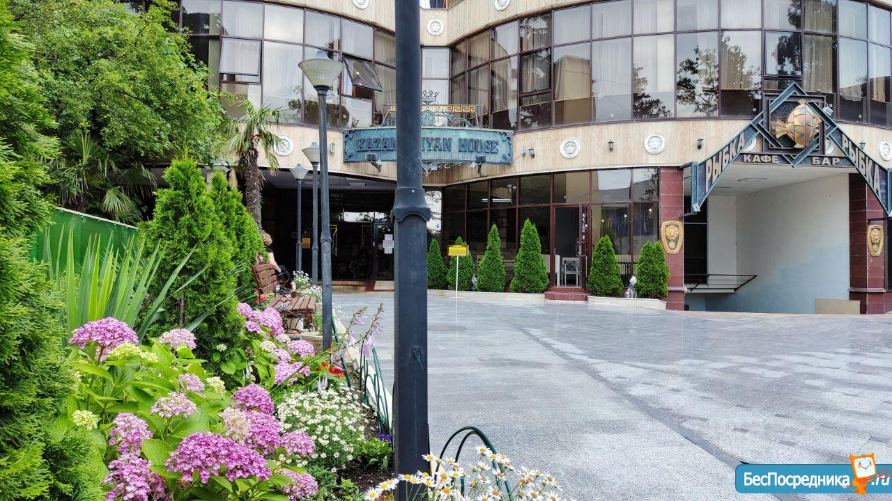 Рядом магазины, кафе. Бювет с лечебной минеральной водой. Океанариум, дельфинарий.