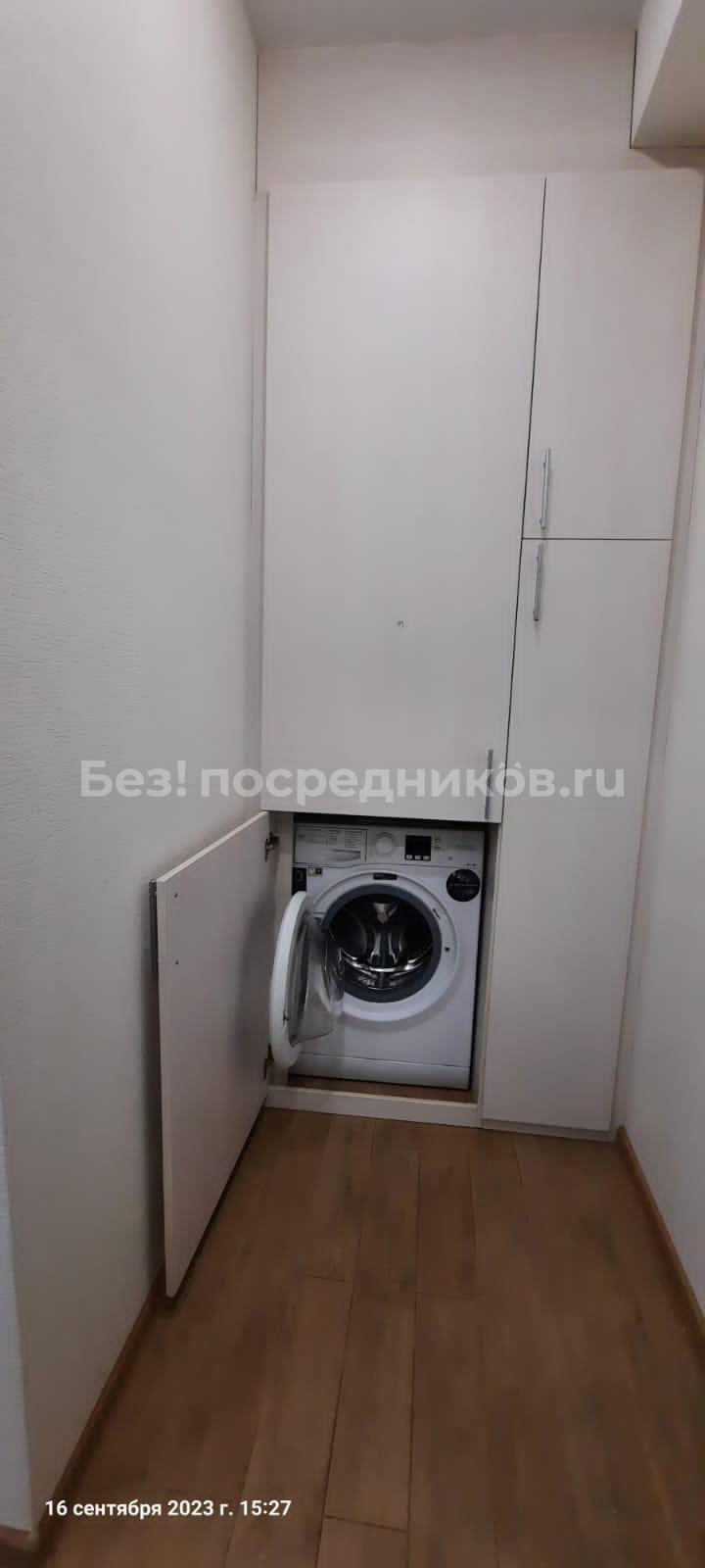 - Большой кухонный гарнитур, вытяжка, холодильник, стиральная машина.