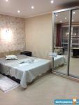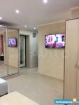 В квартире есть всё необходимое для проживания: шкаф (2-шт.), большая двухспальная кровать, 2 (два) раскладных дивана, телевизор, холодильник, плита газовая, кондиционер, стиральная машина, необходимая посуда, три просторные кладовки и т.д.