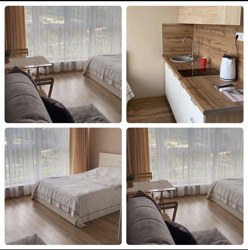 Прекрасный вид из окна на горы. В шаговой доступности магазины, аптеки, школа, д/сад, больница, поликлиника. Хорошая транспортная развязка.