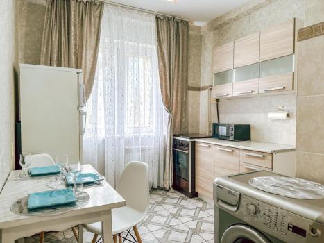 Вид из окон на пешеходную зону .Уютный двор , закрытая территория. Квартира в отличном состоянии. В ней имеется все необходимое для комфортного проживания 2-3 х человек ( дети от 6 лет) (мебель, сплит система, стиральная машина, телевизор, холодильник , микроволновая печь, посудомоечная машина, интернет и кабельное телевидение) .Вся инфраструктура в шаговой доступности .Коммунальные услуги входят в стоимость проживания .