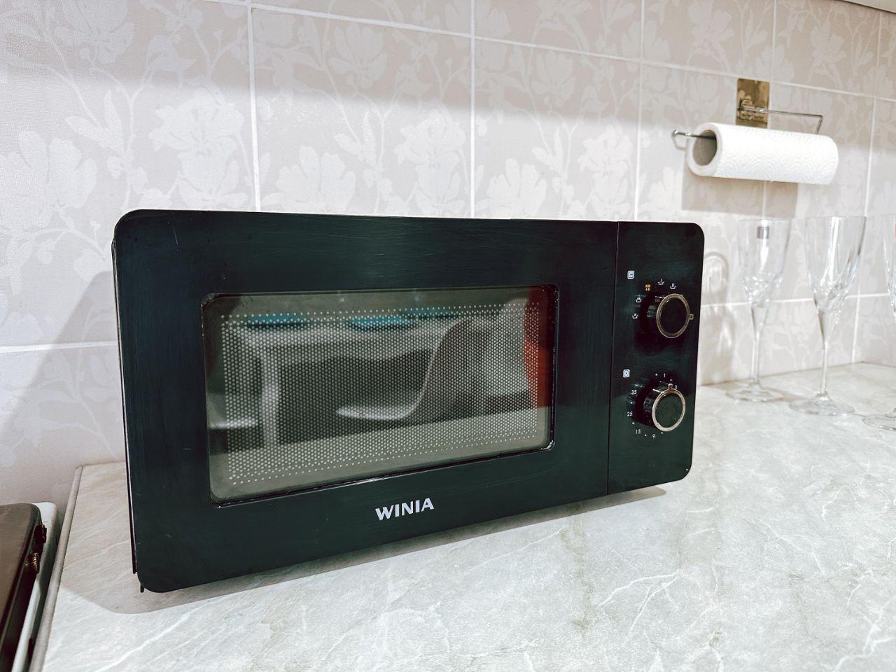 - просторная кухня с газовой плитой и духовкой, посуда, микроволновка;