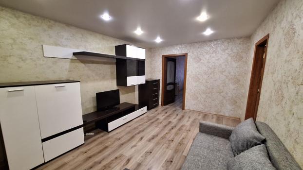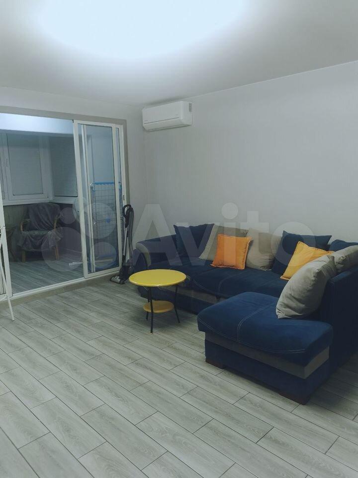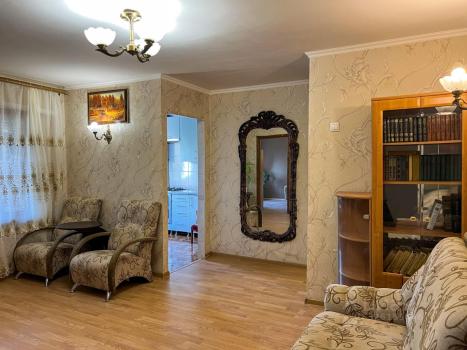 Планировка: 2 спальни, большой зал, лоджия, кухня, ванна, коридор. Подойдет семейной паре, работающей удаленно или паре с ребенком. В зале есть кондиционер, телевизор, а также раскладной диван, возможно принимать гостей.
