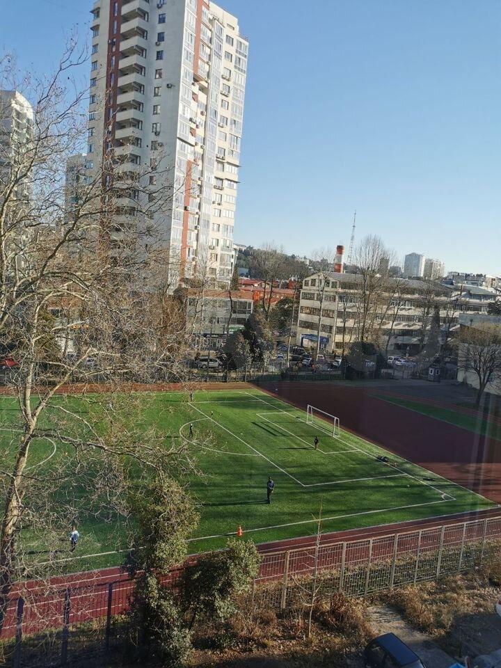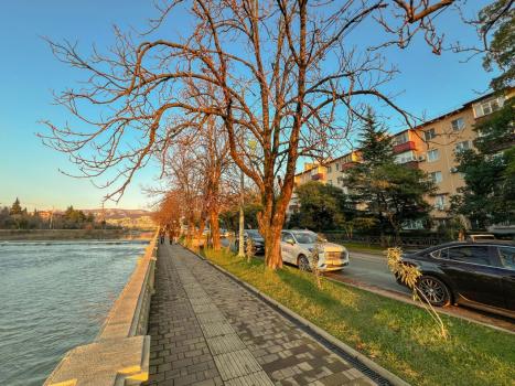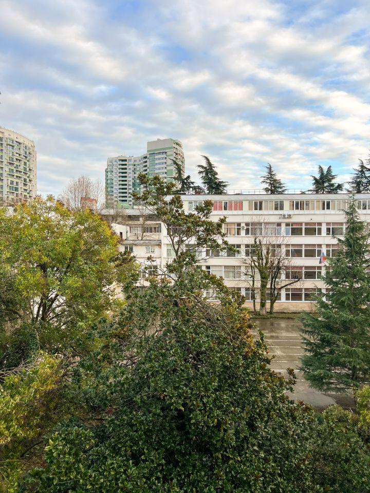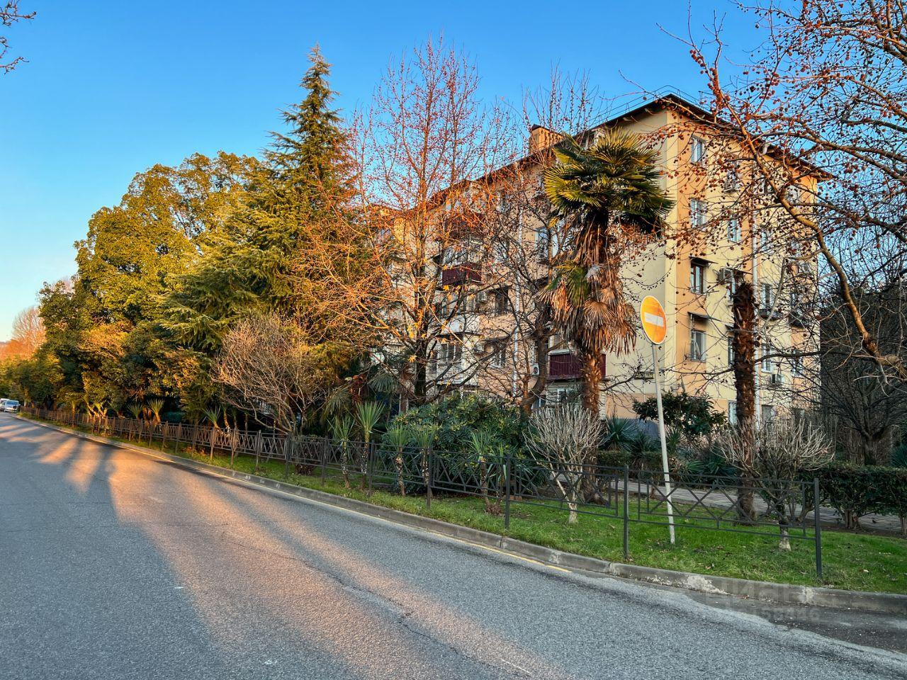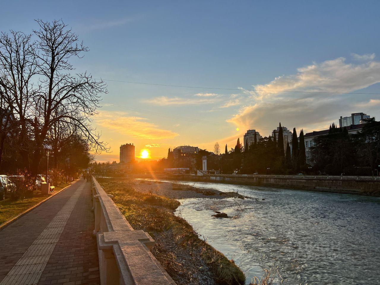 Из квартиры вид на 2 стороны: на реку и набережную р. Сочи и в тихий двор на Гимназию 1. Дом расположен в спокойном и уютном месте, до моря 20 минут прогулочным шагом по набережной реки, до Моремолла 15 минут пешком.