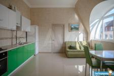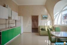 Высокие потолки. Большая кухня-гостиная.