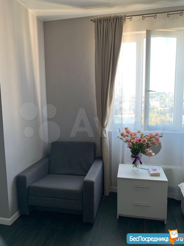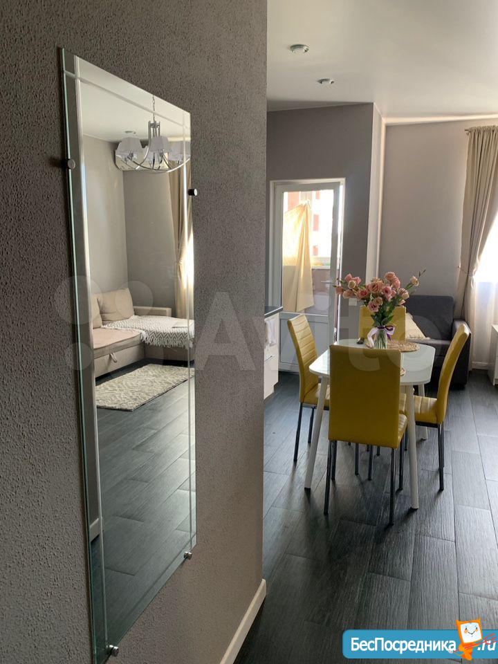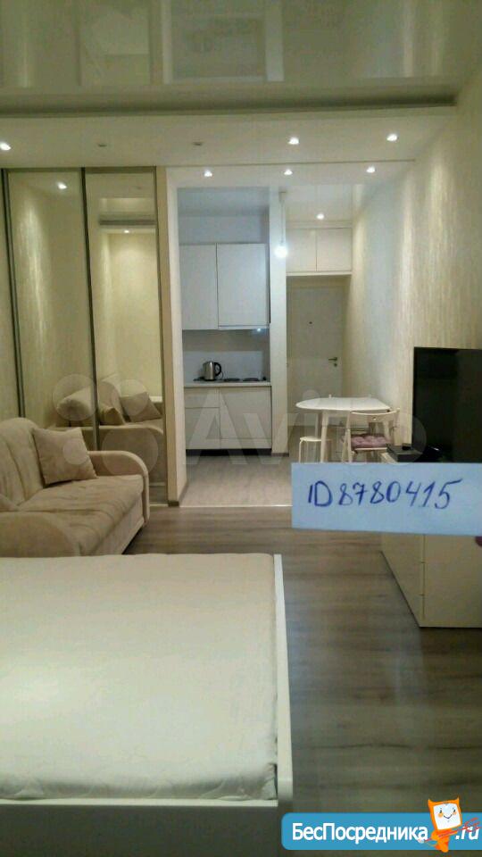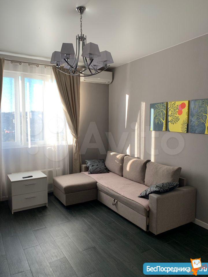Cдается квартира-студия с отличным ремонтом. В квартире есть вся мебель и техника. Закрытая территория комплекса, дежурит консьерж.