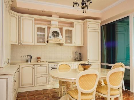 Итальянская кухня со всем необходимым. Итальянская (венецианка) штукатурка в отделке. Шкаф купе в прихожей. Шкаф в спальне. Уголок для работы на ноутбуке.