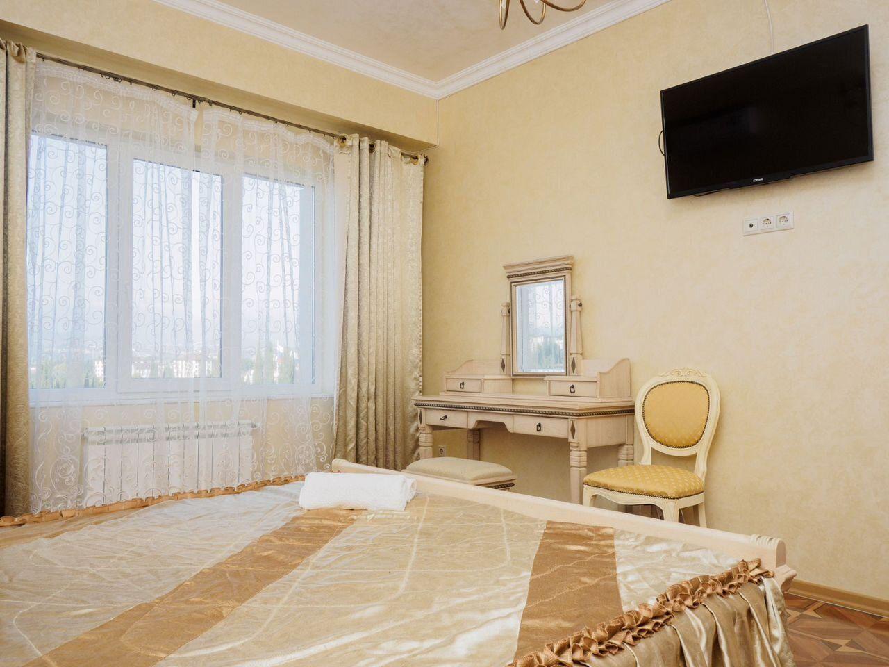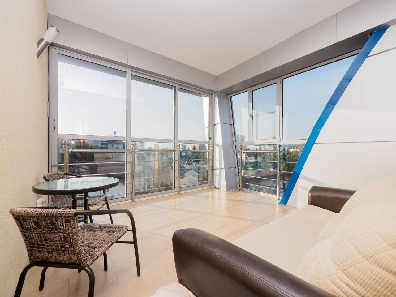 Двухкомнатная квартира состоит из просторной спальни (очень широкая кровать 18002000, с новым ортопедическим матрасом 2024 г.), кухни- гостиной (раскладной диван), а также большой лоджии с видом на море и город.