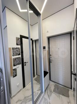 Встроенная кухня с варочной панелью, духовым шкафом, вытяжкой совмещена с гостиной. В гостиной угловой, раскладывающийся в просторное спальное место, диван. В спальне рабочий стол, вместительный комод. Просторная встроенная гардеробная. Пол - плитка. Заехать можно с 19.07.23