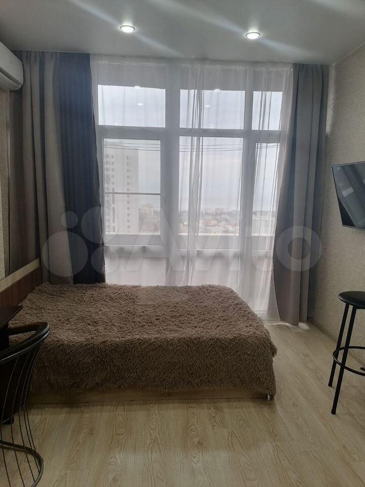 Квартира студия сдается в долгосрочную аренду без повышения цены на лето, имеется два окна, есть все для комфортного проживания, сплит система, телевизор, телевидение, интернет, вай-фай, вплоть до ложек и вилок и т.д., все как на фотографиях, оплата 25 т.р. плюс коммунальные услуги(электричество по счетчику, вода и канализация по счетчику, интернет и т.д.) депозит 12,5 т.р. Новый косметический ремонт. До автобусной остановки 50 метров.