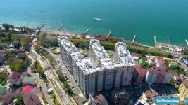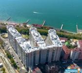 ЖК Посейдон. Дом бизнес- класса на первой береговой линии. До моря 70 метров. На территории комплекса кафе, рестораны, магазины, детские и спортивные площадки. Окна выходят на набережную реки Псахе, море и горы.