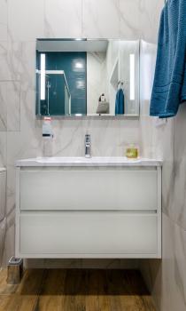 Квартира очень светлая. Из окон в пол открывается шикарный панорамный вид на море.