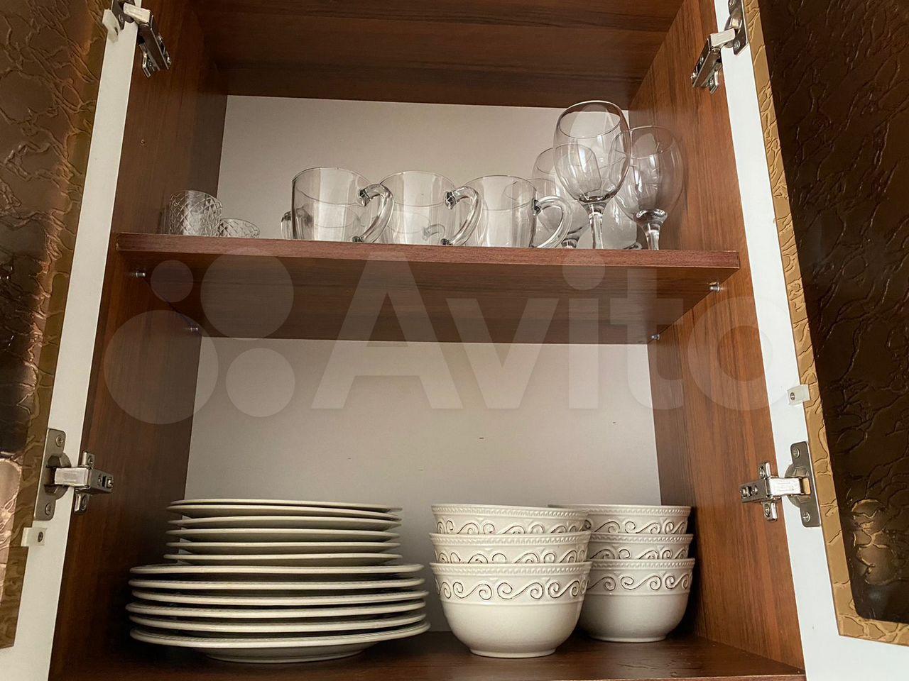 холодильник, плита, микроволновка, стиральная машина, телевизор.