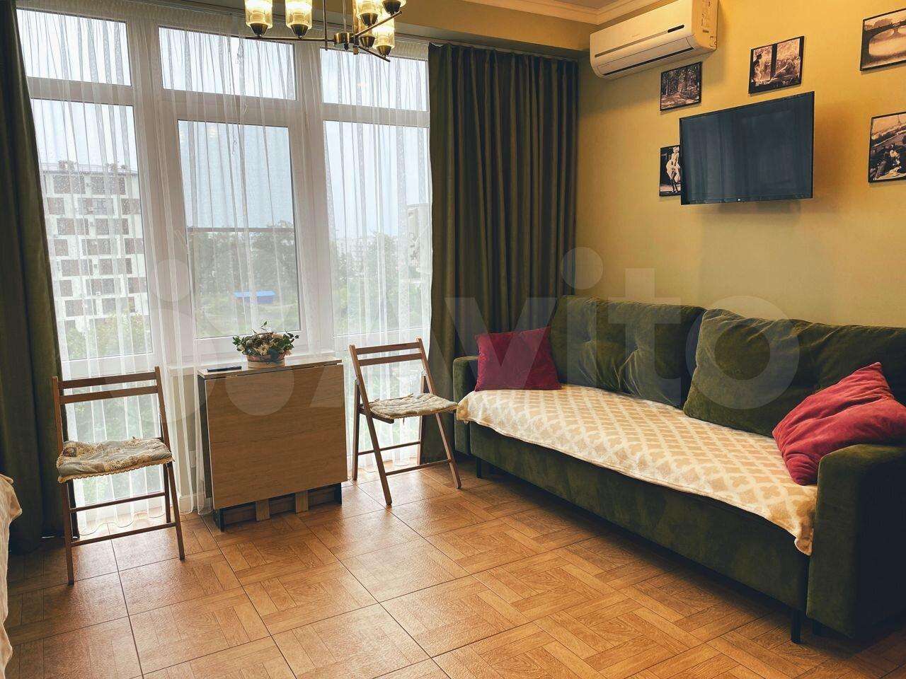 Сдам долговременно квартиру-студию в центре с шикарным видом на море. Цена октябрь-май= 27000, июнь-сентябрь=40000. +Коммунальные платежи отдельно по квитанции около 2000. Залог 10000 возвращается в день выезда. Квартира уютная и чистая, курить и содержать животных в ней запрещено. Мебель легко переставляется под ваши потребности и настроение. Для жизни есть все: теплый пол и сплит, плита, чайник, микроволновка, холодильник, постельное белье и посуда, стиральная машина, утюг и фен, интернет. До моря 500м, пляж, кино под открытым небом "Сочифорния". Детская площадка во дворе, ребенка будет видно из окна, парк "Южные культуры" за окном, река Мзымта в двух шагах, "ГиперМагнит" в десяти шагах, совсем рядом "Магнит у дома". Возле дома есть кафе и рестораны, столовые, в пешей доступности городские набережные, ТРЦ "Мандарин", Адлерский рынок, деловой центр города, школы, сады и развивающие детские центры, Олимпийские объекты.