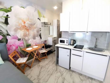 Уютная светлая студия со свежим ремонтом и всей необходимой мебелью и бытовой техникой, большой телевизор.